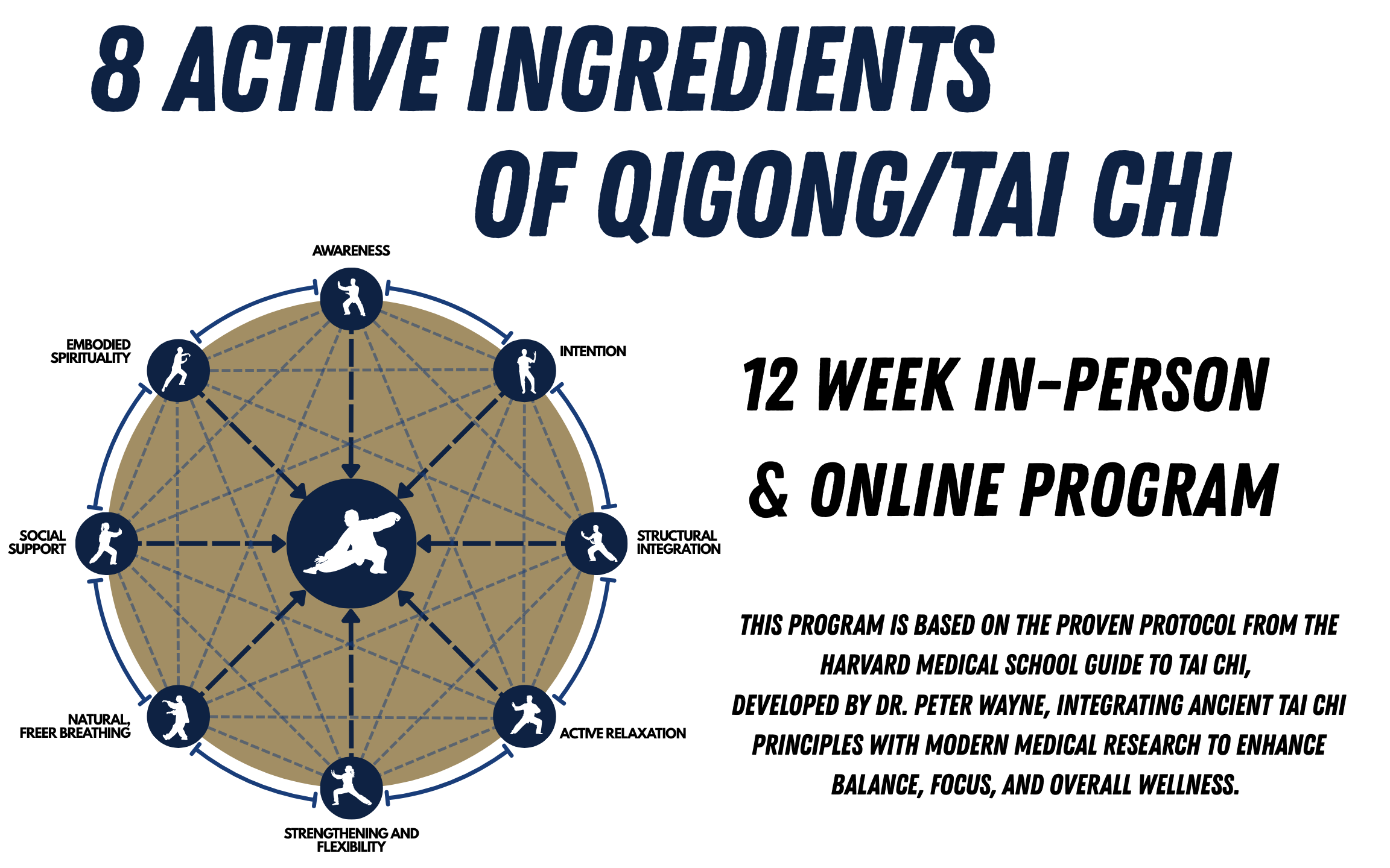 During these 12 weeks, experience the science-backed benefits of Qigong and Tai Chi through gentle movement, mindfulness, and breath awareness—accessible to all levels. Based on the proven protocol from The Harvard Medical School Guide to Tai Chi